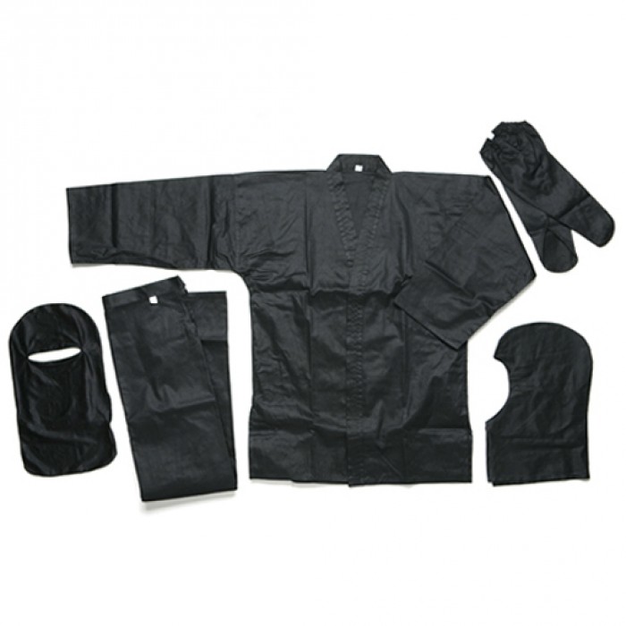 Ninja uniform 8-oz in 100% cotton drill dyed ?Black?. With 1 cotton cap, cap & 2 arms cover with normal pant.